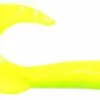 4 inches long and contains 3 lures per pack. The recommended hook is a 6/0 wide gap hook