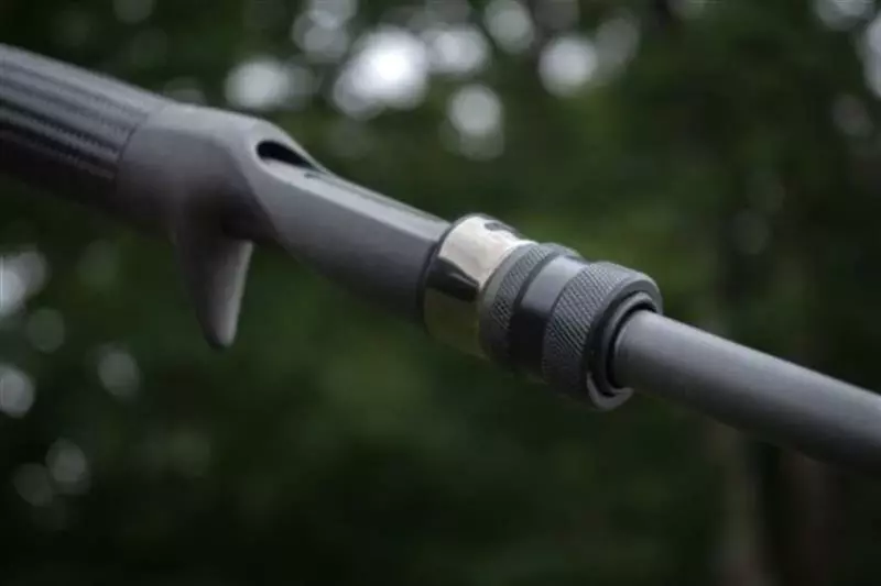 – Machine braided carbon-fiber sleeve. More sensitive than cork, 20% lighter, and has a shelf life of 5,000 years.