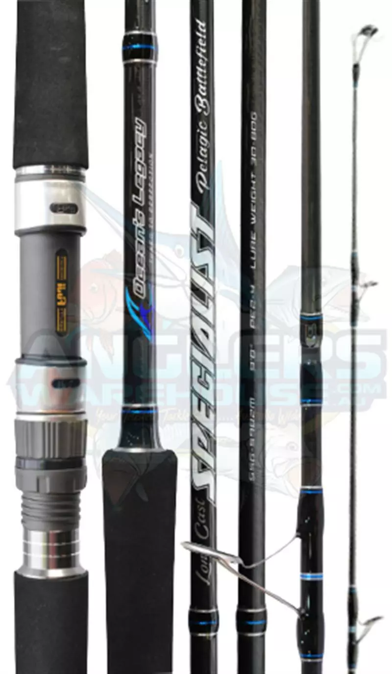 Utilising Japanese Toray Carbon high modulus fibre, the Ocean’s Legacy Specialist blank is custom rolled to bring you an insanely light yet magnificently powerful land-based lure casting rod. With increased castability and fighting power while reducing angler fatigue in mind the Specialist Long Cast was born. Utilising Japanese Fuji components including Fuji DPS reel seats and locking nuts custom designed for Ocean’s Legacy and Fuji KW double foot guides for superior strength across the range nothing is left to chance. The Specialist range of rods endured vigorous testing up and down the entire West Australian coast landing everything from Mulloway, Pink Snapper and Blue Grouper to Tuna, Spanish Mackerel and even Giant Trevally.