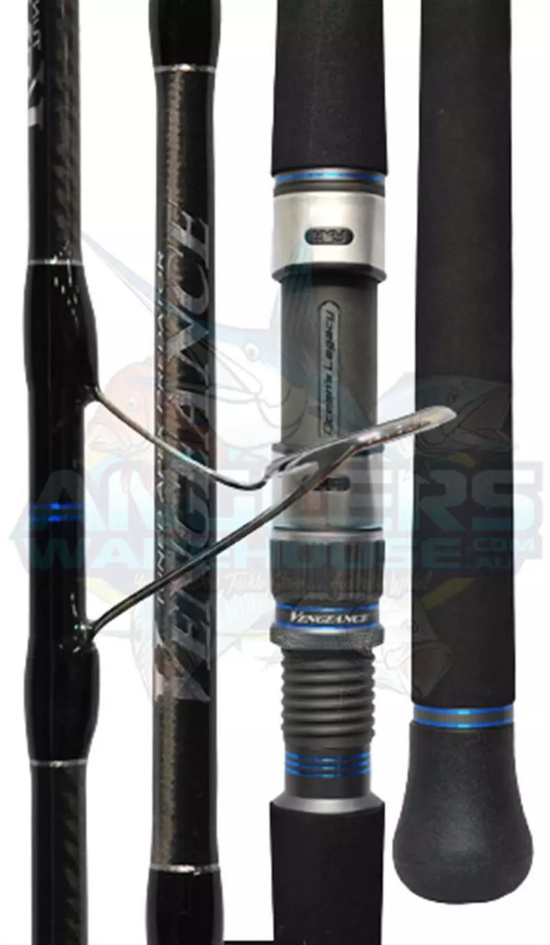 Our new Vengeance series have been custom rolled with the finest Japanese Toray graphite with our Cross Core Carbon technique to withstand the biggest trophy species. The initial blank trials of the XH model surpassed a 40KG dead lift at 45 degrees during testing. The Vengeance series ensure maximum jig action without fatigue on the angler. Designed for heavy vertical jigging, this rod will land your trophy Dogtooth Tuna, Yellowtail king or any unstoppable species, which were not deemed possible previously. The Vengeance series features the highest quality Japanese Fuji stainless steel KW silicon carbide guides and Fuji DPS reel seat with custom locking nuts designed specifically for Oceans Legacy. The Vengeance series has been extensively tested at Cocos Keeling Islands off the coast of Western Australia.