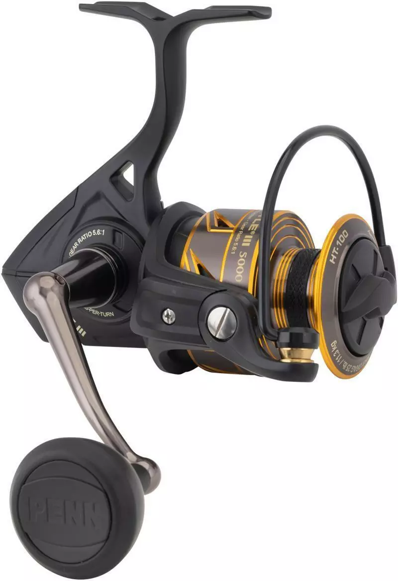 The PENN Battle II offers attractive cosmetics, durable design, and silky-smooth HT-100 drag as just a few of the many reasons why so many anglers fish this reel. The Full Metal Body construction allows it to maintain precision gear alignment under severe punishment. With the Superline Spool™, no backing is needed because of the rubber gasket that keeps superlines from slipping. A great value for the price point.