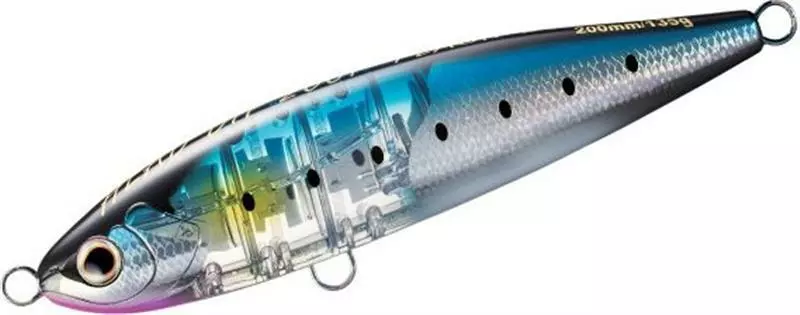 Featuring Shimano’s market leading Flash Boost and AR-C technology, the Ocea Head Dip is a floating stickbait designed to be cast amongst frenzied bait balls. Available in a 175mm and 200mm size, weighing 97g and 135g respectively. The patented Flashboost system uses a reflective mirror that creates a continuous flash within the body through kinetic energy. When retrieved, the lure imitates a wounded baitfish by quickly diving below the surface and returns to a vertical position with the head sitting above the water on the pause. Combined with four exciting colours, this lure will attract hard-fighting pelagic species every inch of the way back to the boat.